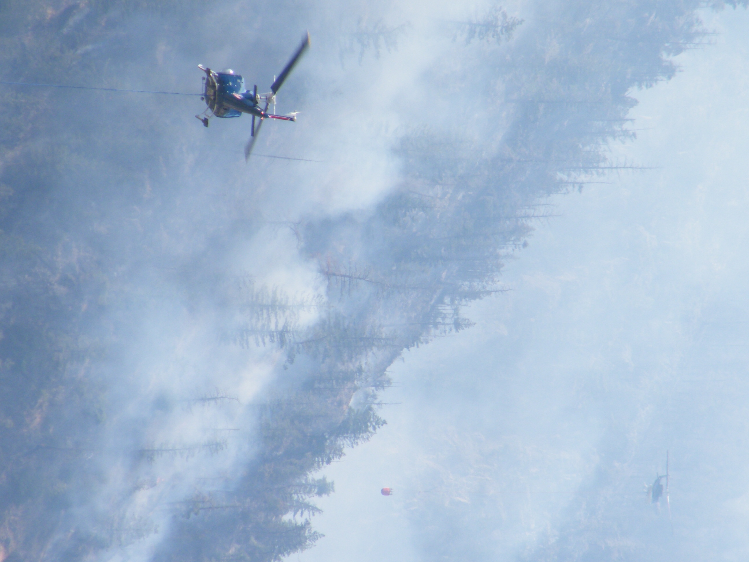 These helicopters were flying right above us as they approached the stream immediately by the road. The 2 of them would take turns filling there buckets and then flying off to dump them. We have a video too so maybe Ryan can upload it on the site as it was really an unbelievable site.