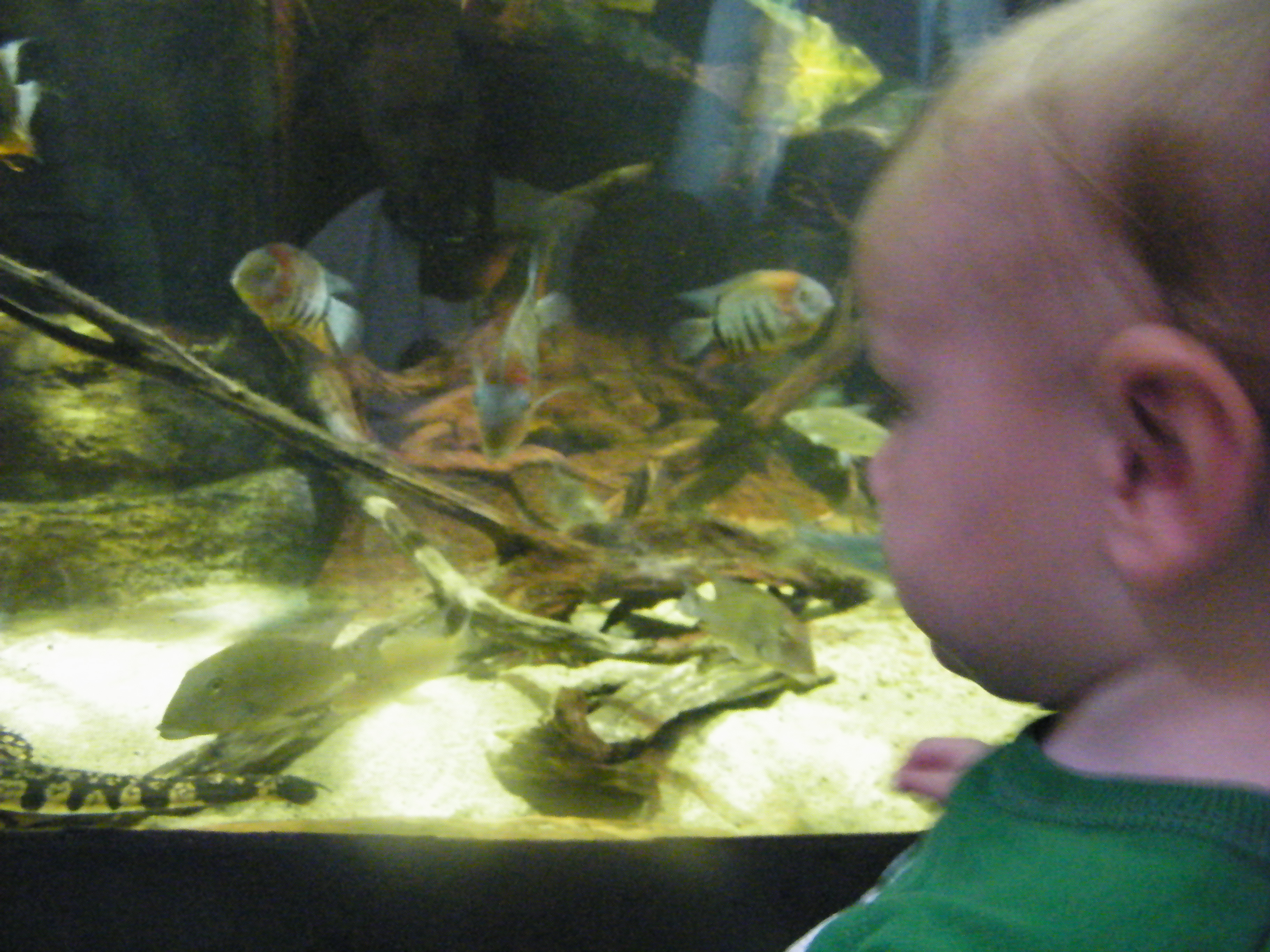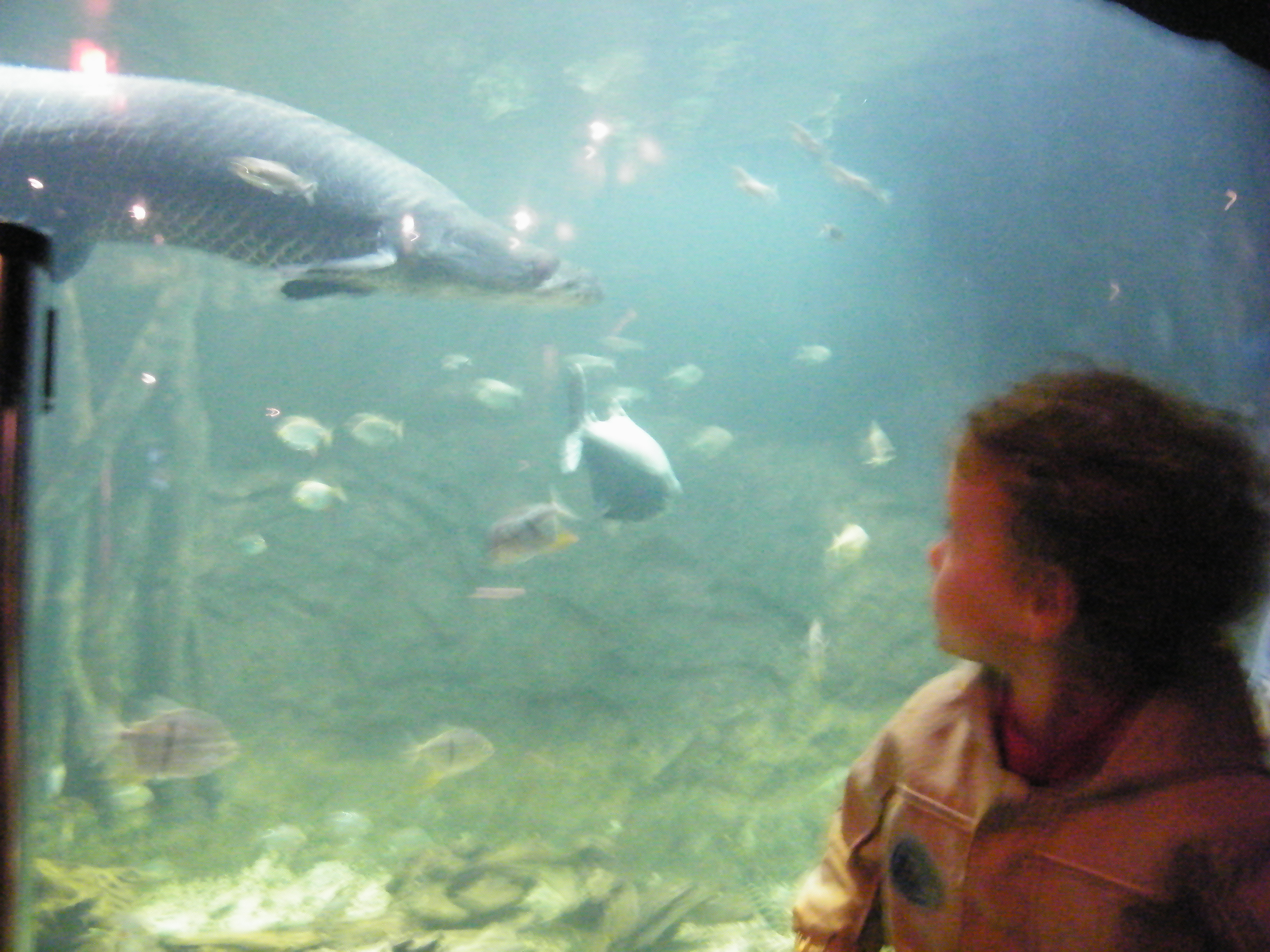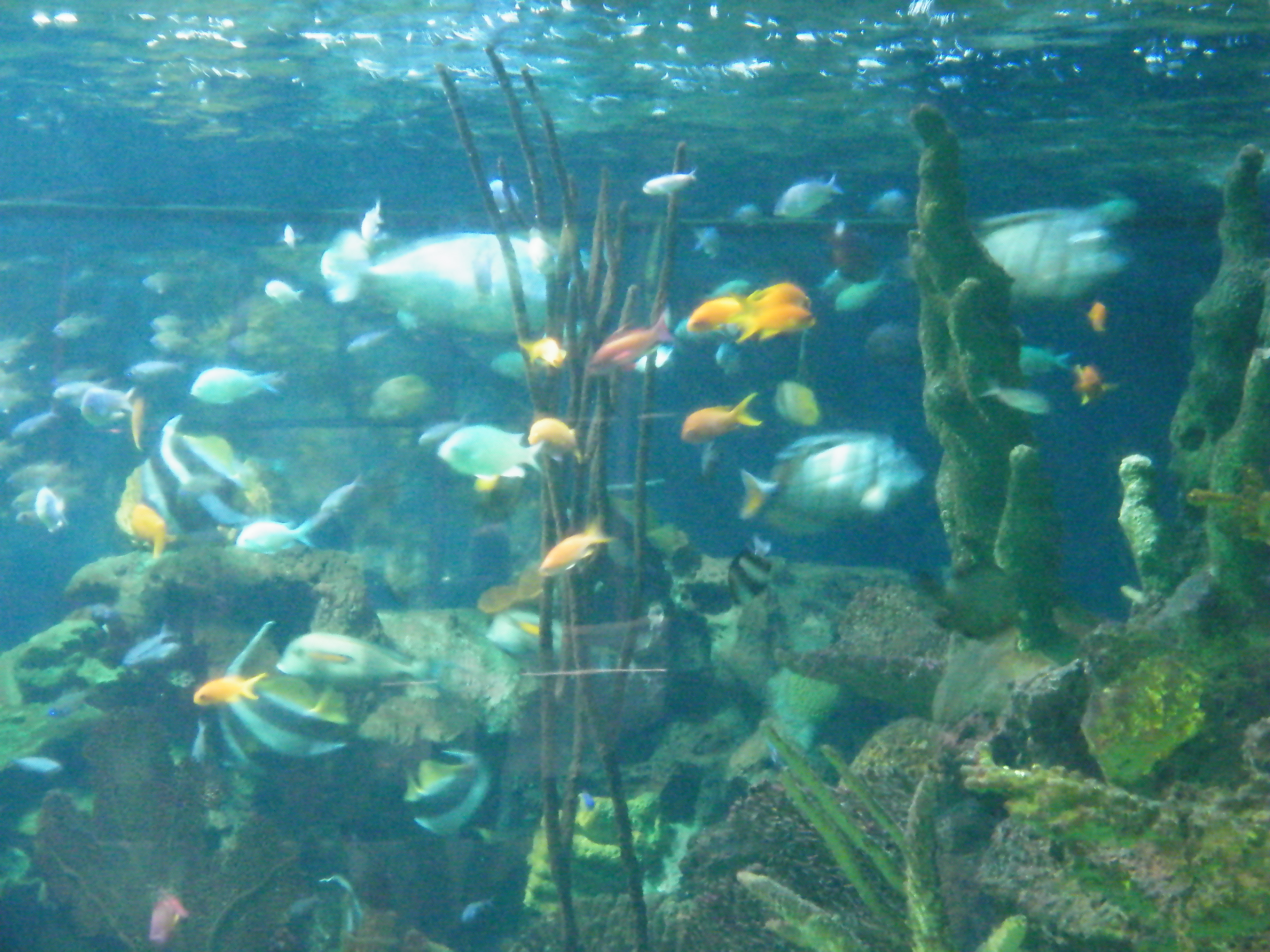 The fish tanks were just a beautiful array or color, the “monster fish” were huge, and the rays as well as sharks were unbelievable. The sharks were so hard to get a good picture of though.