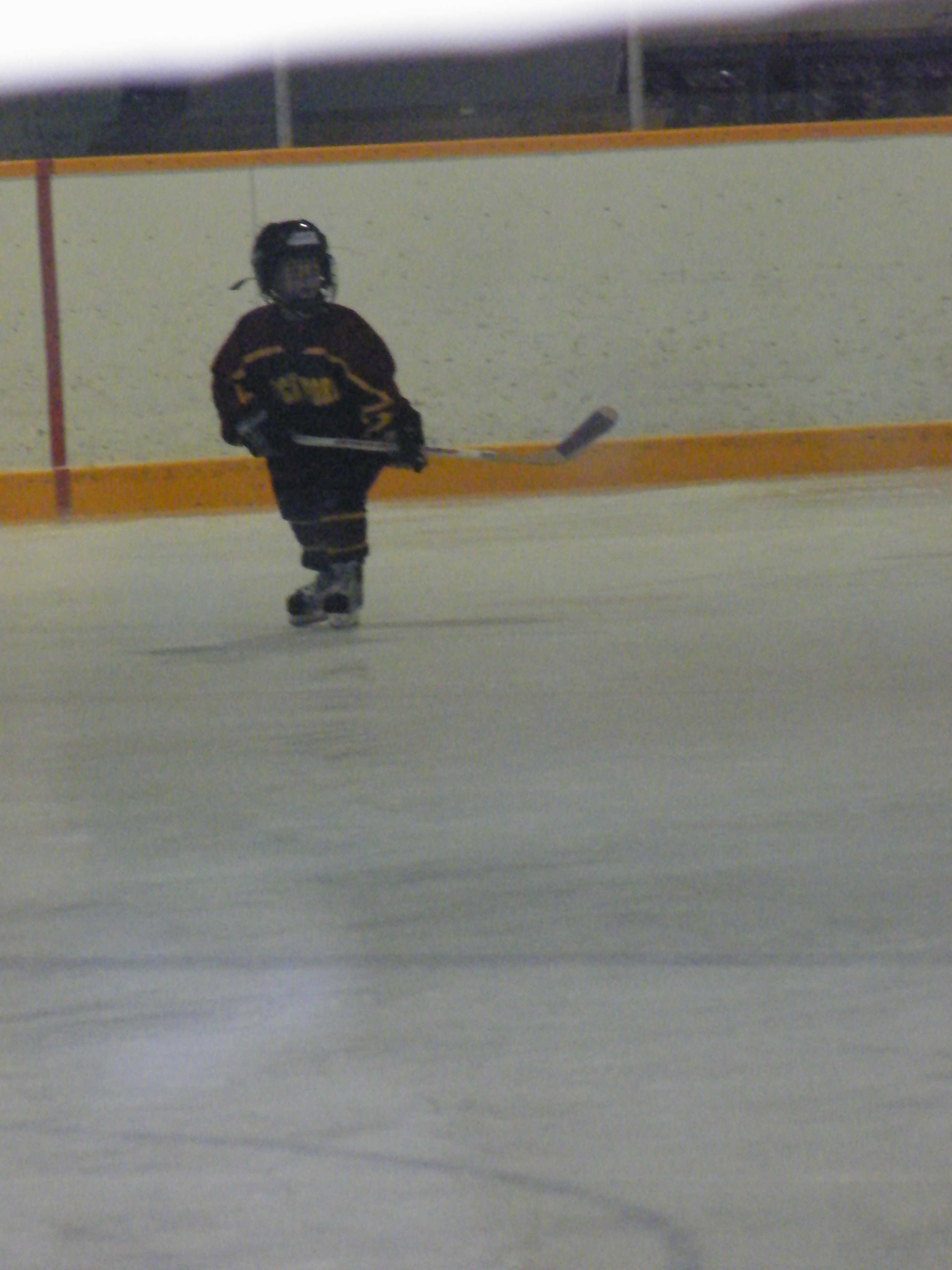 I went to watch my nephew play hockey on Monday and it was great. He is 4 years old and playing for the first time. It was so cute watching the kids chase the puck and half of them not making it there before it changes directions. I can’t wait for my boys to start getting into sports and activities. Hurray! I tried to get some great pictures but as you can see they didn’t turn out as well as I had hope. Enjoy them anyways.